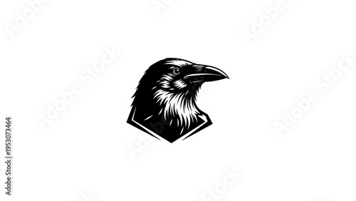© Denis, Fototapeta premium Detailed black raven head in monochrome for logos and branding