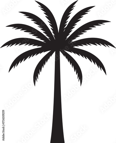 © SAPNAHAR, Obraz premium Detailed Black Silhouette of a Palm Tree on White tropical