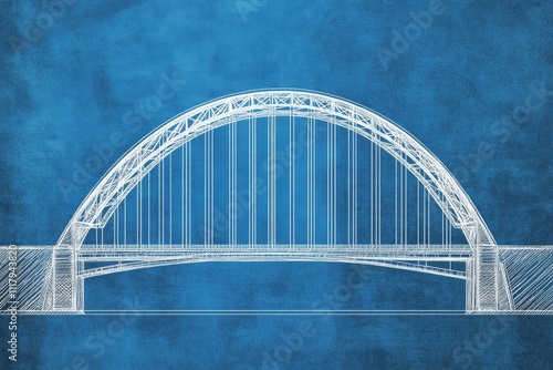 Fototapeta premium Detailed blueprint illustration of a majestic arch bridge with a striking...