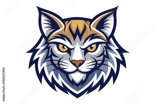 © Brojendra, Fototapeta premium Detailed bobcat face shows golden eyes and blue shading on the white background