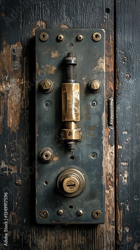 © SUVO, Fototapeta premium Detailed brass switch components close up high resolution picture