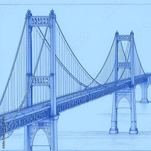 Fototapeta premium "Detailed Bridge Blueprint: Iconic Structural Design for Engineers and...