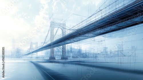 © Jasmine, Obraz premium Detailed bridge blueprint with structural calculations, fine linework and technical precision