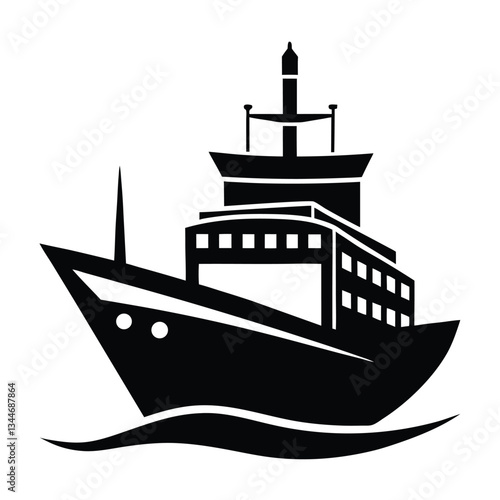 Obraz premium Detailed Cargo Ship Silhouette Vector Illustration
