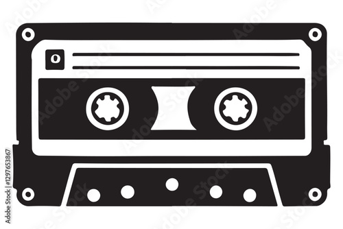 Obraz premium Detailed Cassette Tape Silhouette Vector for Audio and Music