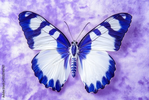 Fototapeta premium Detailed close-up of a beautiful butterfly with intricate blue and white wings.
