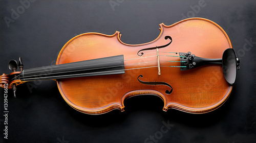 © Eko, Fototapeta premium Detailed Close Up Of A Brown Wooden Violin On Dark Textured Background
