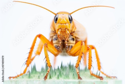 Fototapeta premium Detailed close up of a cockroach on a defocused white background, providing...