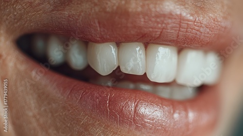 Obraz premium Detailed close up of a genuine human smile highlighting clean bright white...