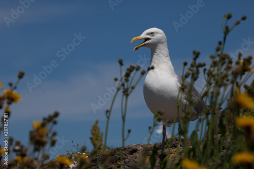 © DaiMar, Obraz premium Detailed close up of a gull with blue sky behind