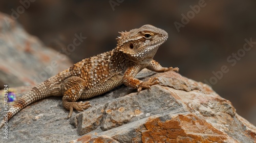 Fototapeta premium Detailed close up of a lizard basking in the warm sunlight for optimal...