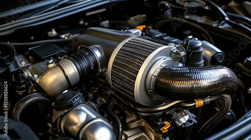 Fototapeta premium Detailed Close-Up of a Modern Car Engine with Performance Components and...