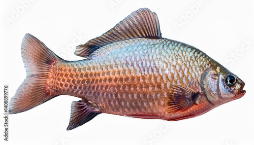 Fototapeta premium Detailed Close Up of a Single Colorful Fish Isolated on White Background Ideal for Scientific or Culinary Use