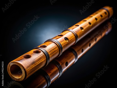 © Curie, Naklejka premium Detailed Close-Up of a Traditional Chinese Bamboo Flute Against a Black Background Highlighting Its Intricate Texture and Cultural Significance in Music