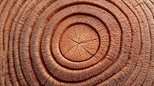 Fototapeta premium Detailed close-up of a tree trunk cross-section showing growth rings
