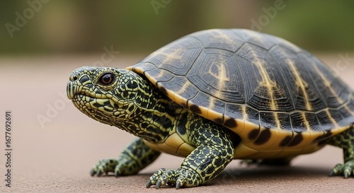 © Nia, Obraz premium Detailed Close-up of a Turtles Shell and Skin.