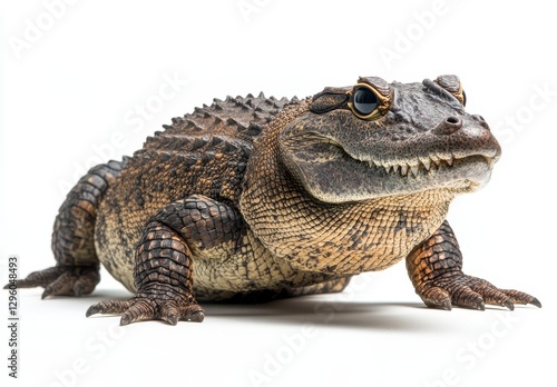 © ANUAR, Naklejka premium Detailed Close-Up of a Unique Crocodilian Creature with Distinctive Features and Textured Skin on a Pure White Background