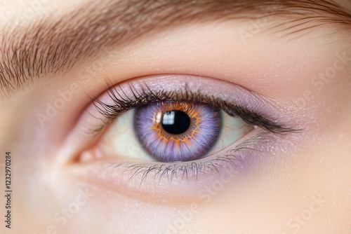 © Zeeshan, Obraz premium Detailed close-up of a womana??s pastel lavender eye, showcasing fine gradients and intricate patterns in the iris, captured in