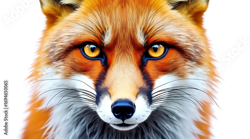 © Mini Minami, Fototapeta premium Detailed close up of fox face with sharp fur detail and intense amber eyes looking directly, showing natural beauty and wild expression