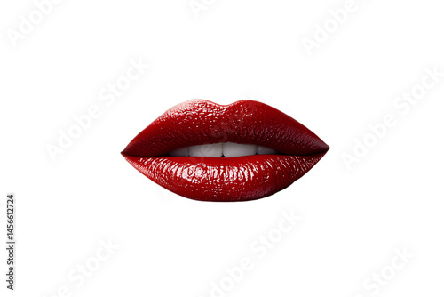 © Tanicsean, Obraz premium Detailed close-up of glossy red lips showing perfect teeth, radiating allure and intensity, isolated on a transparent background