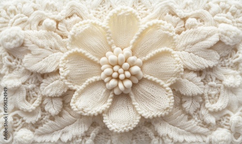 Obraz premium Detailed close-up of intricate, textured, cream-colored floral design