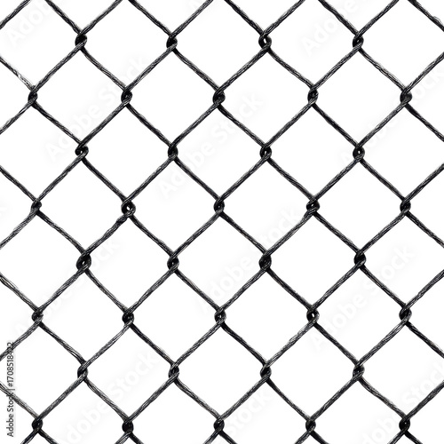 © Majnu, Naklejka premium Detailed Close-up of Metal Chain Link Fence Pattern on Black Background fencing wire, Isolated On White, Png Transparent, Cut Out