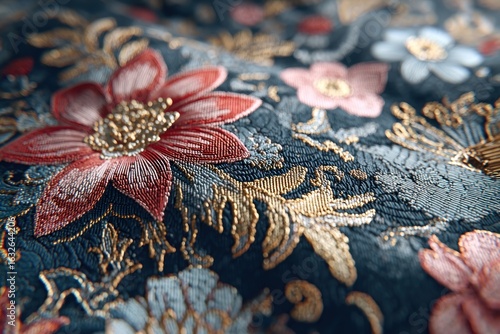 Obraz premium Detailed close-up of ornate fabric with flowers