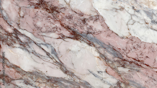© Rashed, Fototapeta premium Detailed close up of pink white and grey veined marble surface stone texture