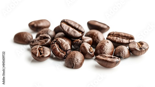 Naklejka premium Detailed close-up of roasted coffee beans, emphasizing their dark, rich color and fine textures. These beans are essential for grinding into a fresh, aromatic coffee blend.