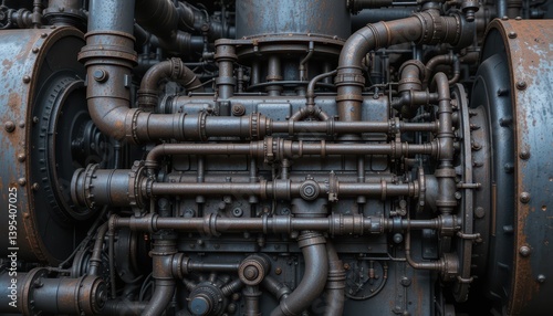 Fototapeta premium Detailed Close-Up of Rusty Industrial Pipes and Engine Components