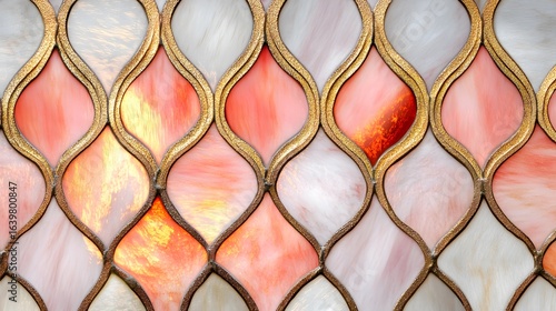 © Almultazam, Fototapeta premium Detailed close-up of stained glass with a repeating pattern.