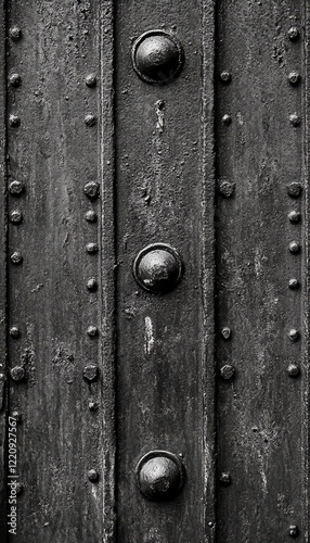 © decorator, Fototapeta premium Detailed close up of worn black metal texture showcasing depth and realism in its surface