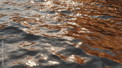 © rama, Obraz premium Detailed close up shows rippling water surface reflecting warm golden light.
