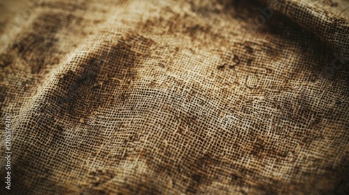 © Bushra, Fototapeta premium Detailed close-up texture of rough burlap fabric provides an organic, rustic background suitable for natural product advertising or rustic themes.