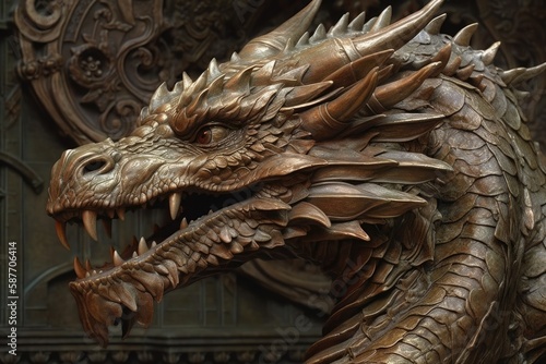 Fototapeta premium detailed close-up view of a dragon sculpture. Generative AI