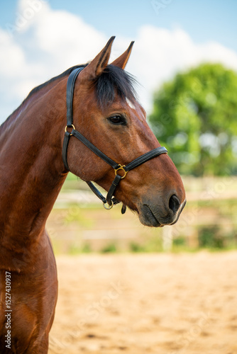 © Alexander, Obraz premium Detailed closeup of horses muzzle and eyes, highlighting grace and sensitivity of this beautiful animal. Ideal for content about rural life, farm animals, and equestrian lifestyle.