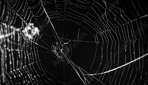 © Sri, Naklejka premium Detailed Closeup Spider Web In Night