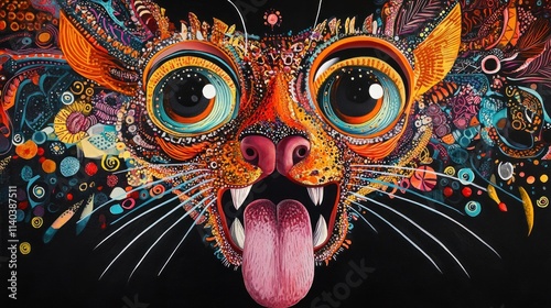 Obraz premium Detailed colorful abstract cat face with tongue.