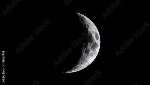 © Poetra RH, Obraz premium Detailed Crescent Moon in the night sky. Crescent Moon on black background with space