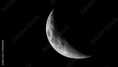 © Poetra RH, Naklejka premium Detailed Crescent Moon in the night sky. Crescent Moon on black background with space