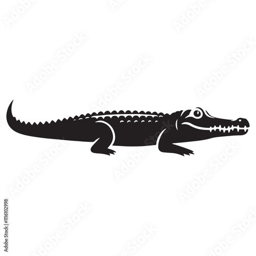 © Vectorhub, Obraz premium Detailed crocodile silhouette for innovative creative needs - Crocodile illustration - minimallest crocodile vector