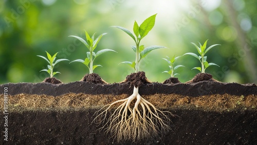 Fototapeta premium Detailed Cross Section of Soil Layer with Growing Plants