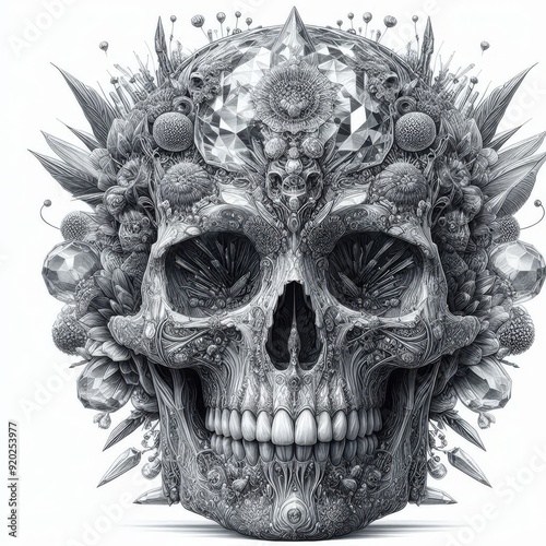 © Vladimir Steblev, Obraz premium detailed crystal skull on white background
