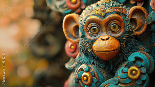 Naklejka premium detailed 3D design of monkey representing Leo zodiac sign, featuring vibrant...