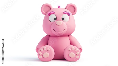 © Li, Fototapeta premium Detailed 3D Icon of a Cartoon Bear Character with Eyelashes in Pink Colors on a Solid White Background