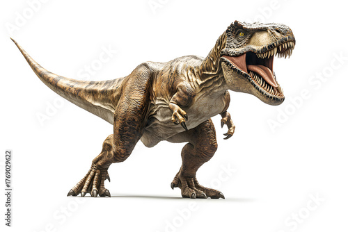 © tu, Obraz premium Detailed 3D illustration of Albertosaurus mid-attack, ancient carnivorous dinosaur isolated on white background, concept of evolution and prehistoric wildlife