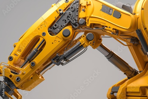 © spyrakot, Fototapeta premium Detailed 3D Illustration of Mechanical Excavator's Hydraulic Arm - Complex Construction Machinery Engineering
