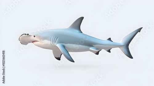 Fototapeta premium Detailed 3D of Powerful Great Hammerhead Shark Clipart on Soft Backdrop