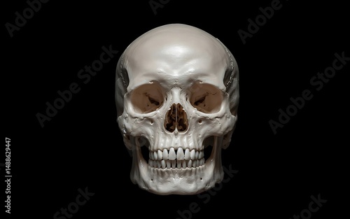 © Taslima, Fototapeta premium Detailed 3D Render of a Human Skull Against a Black Background