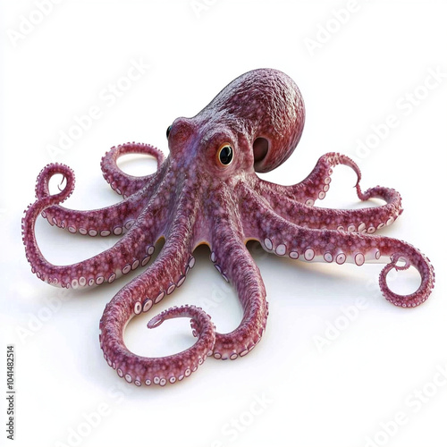 © mingnimit, Fototapeta premium detailed 3D render of an octopus showcases its vibrant purple color and intricate tentacles, creating captivating visual on white background